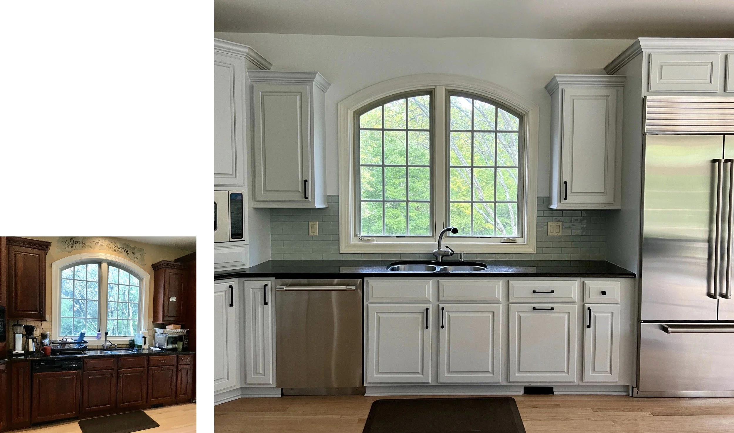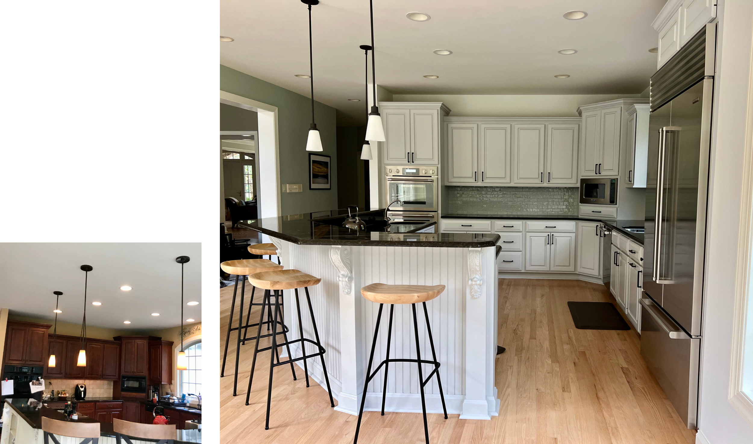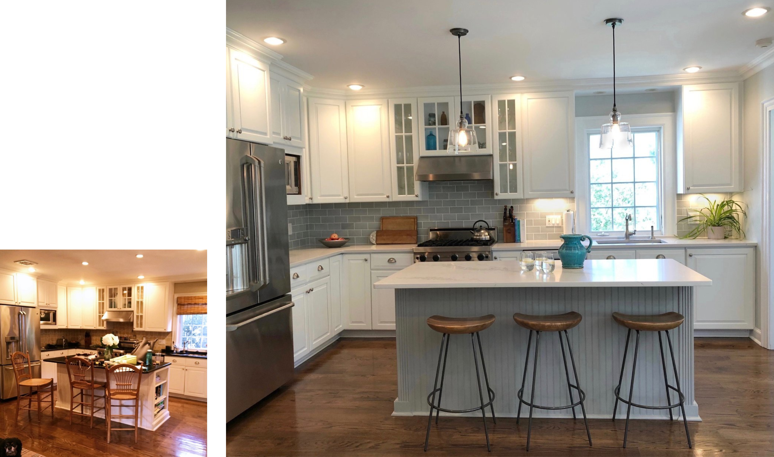 Kitchen facelifts with materials and finishes, lighting and furniture by Chris Cahill Interior Design.